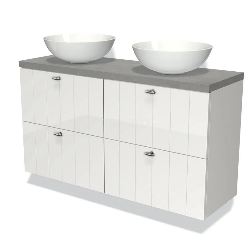 Badmöbel für Waschtischunterschrank mit Konsole 120cm Modulo Plato Slim Hochglanz Weiß 4 Schubladen Schiefer hellgrauer Beton Platte