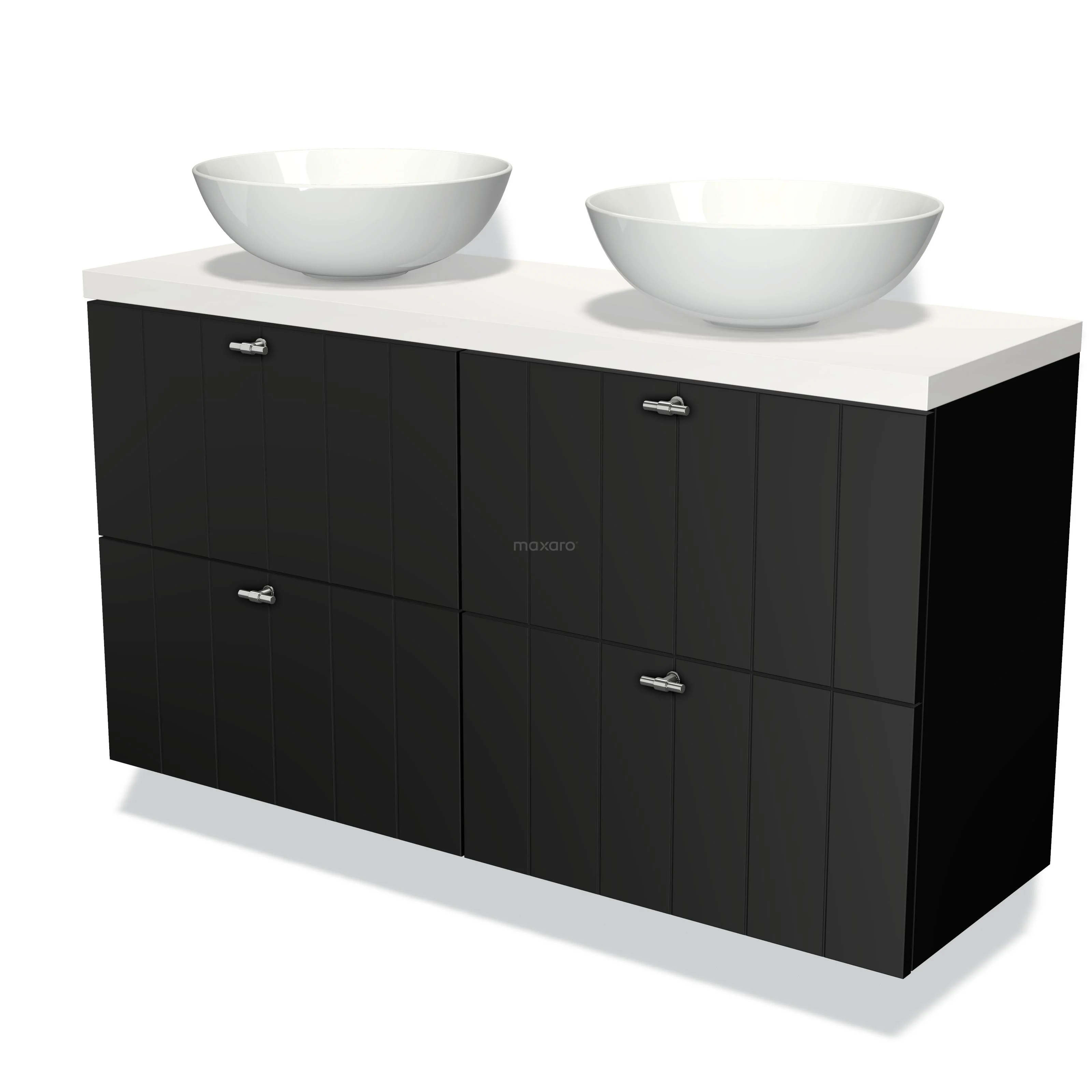 Badmöbel für Waschtischunterschrank mit Konsole 120cm Modulo Plato Slim Matt Schwarz 4 Schubladen Lamelle Matt Weiß Platte