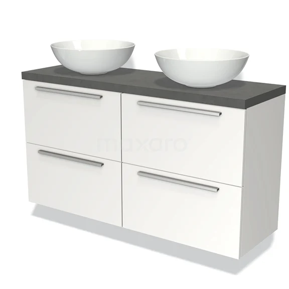 Badmöbel für Waschtischunterschrank mit Konsole 120cm Modulo Plato Slim Matt Weiß 4 Schubladen Flach Dunkelgrau Beton Platte