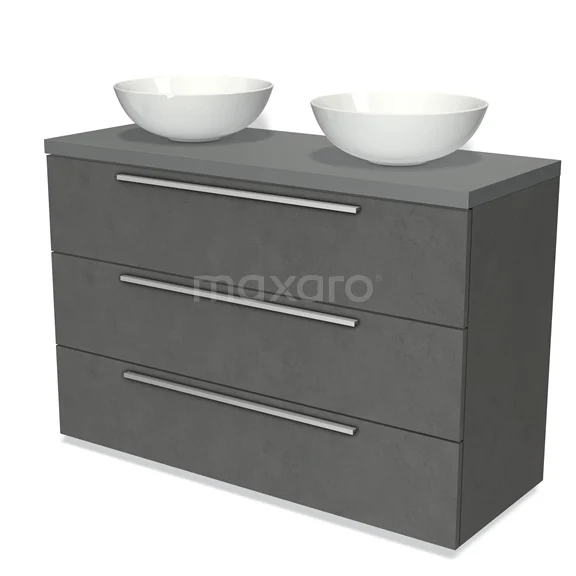 Badmöbel für Waschtischunterschrank mit Konsole 120cm Modulo Platte Dunkelgrau Beton 3 Schubladen Flach Mittelgrau Platte