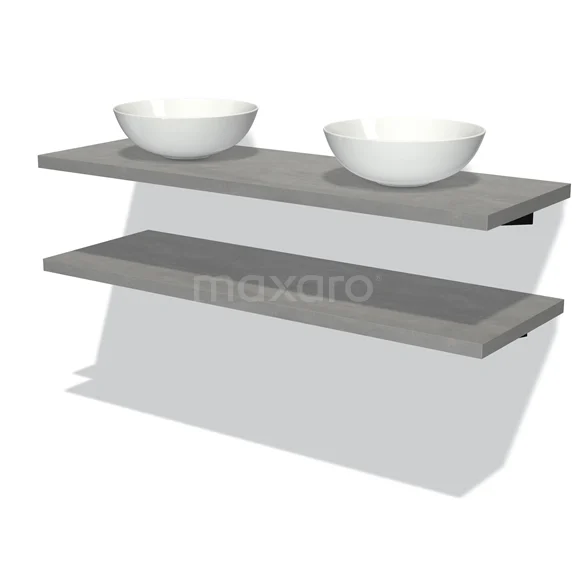 Badmöbel für Waschtischunterschrank mit Konsole 140 cm Modulo Plato hellgrauer Beton 2 Waschtischplatten