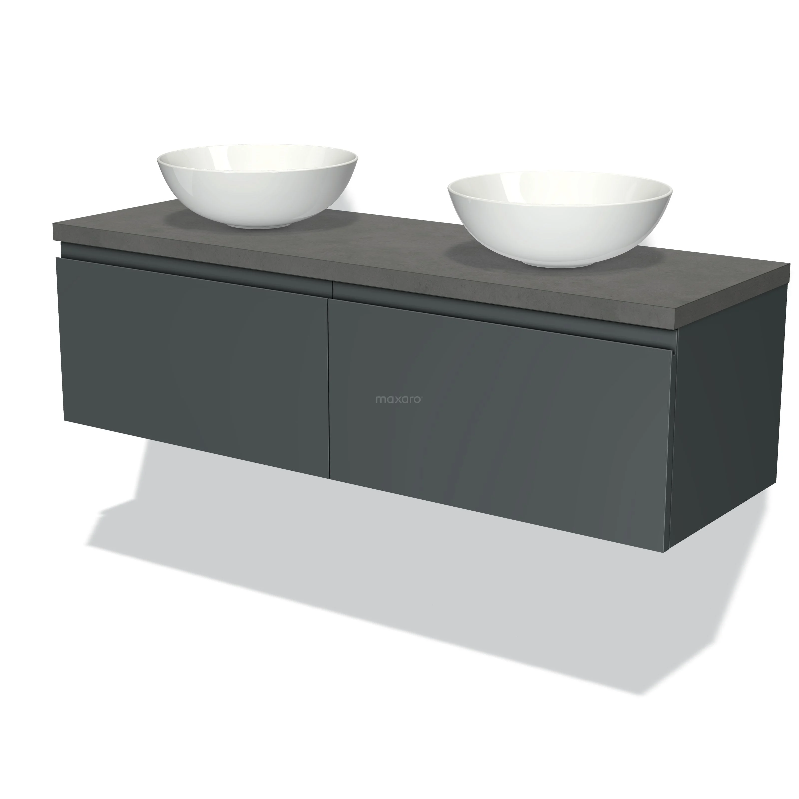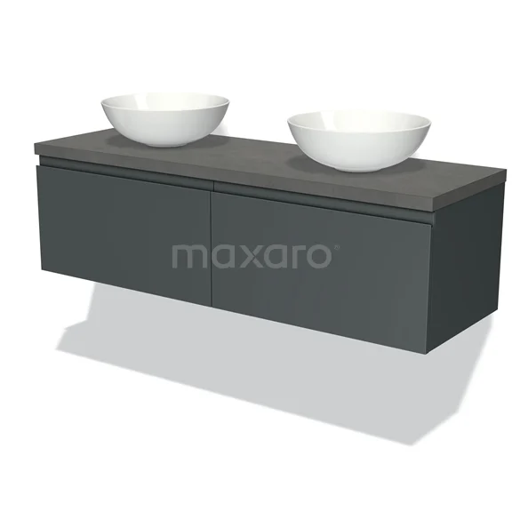Badmöbel für Waschtischunterschrank mit Konsole 140cm Modulo Plato Dunkelgrau 2 Schubladen Grifflos Dunkelgrauer Beton Platte
