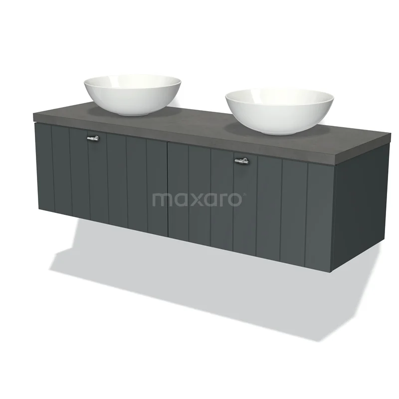 Badmöbel für Waschtischunterschrank mit Konsole 140cm Modulo Plato Dunkelgrau 2 Schubladen Lamelle Dunkelgrauer Beton Platte