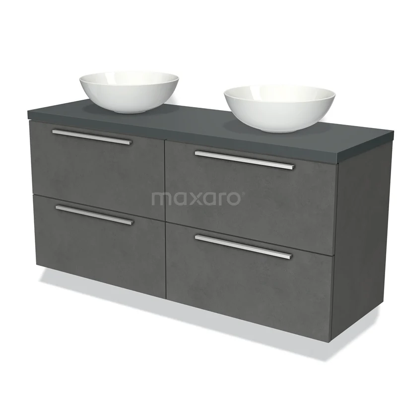 Badmöbel für Waschtischunterschrank mit Konsole 140cm Modulo Plato Dunkelgrau Beton 4 Schubladen Flach Dunkelgrau Platte