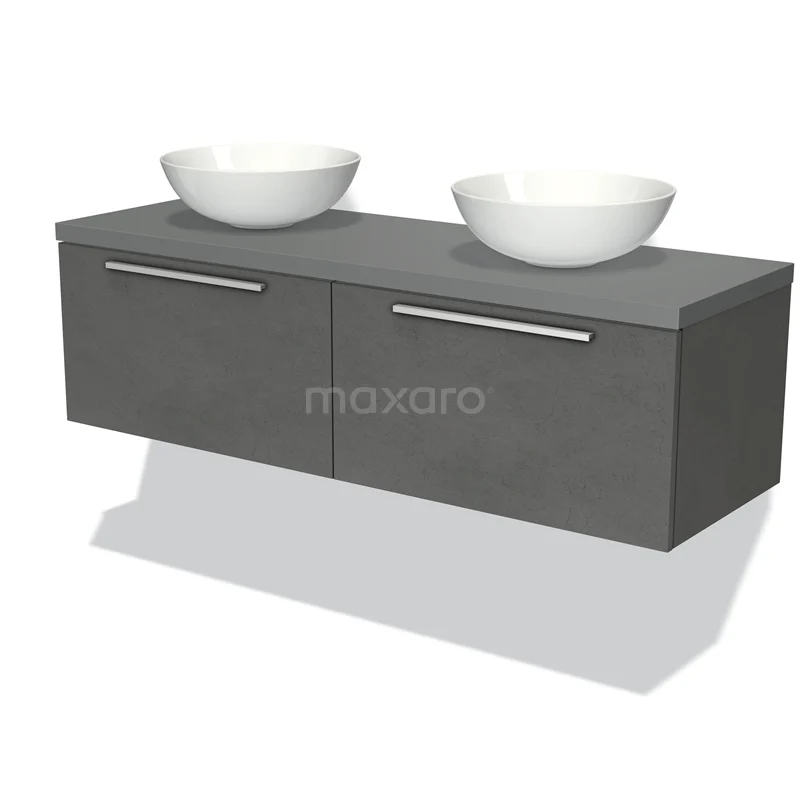 Badmöbel für Waschtischunterschrank mit Konsole 140cm Modulo Plato Dunkelgrauer Beton 2 Schubladen Flach Mittelgrau Platte