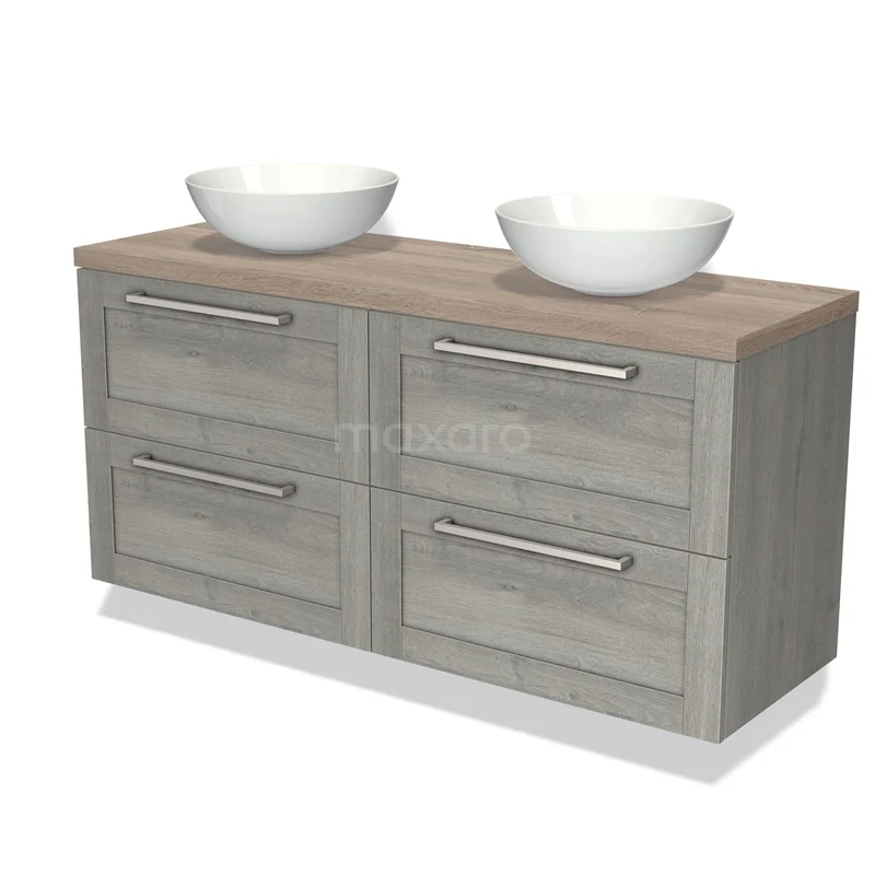 Badmöbel für Waschtischunterschrank mit Konsole 140cm Modulo Plato Grau Eiche 4 Schubladen Rahmen Eiche Platte
