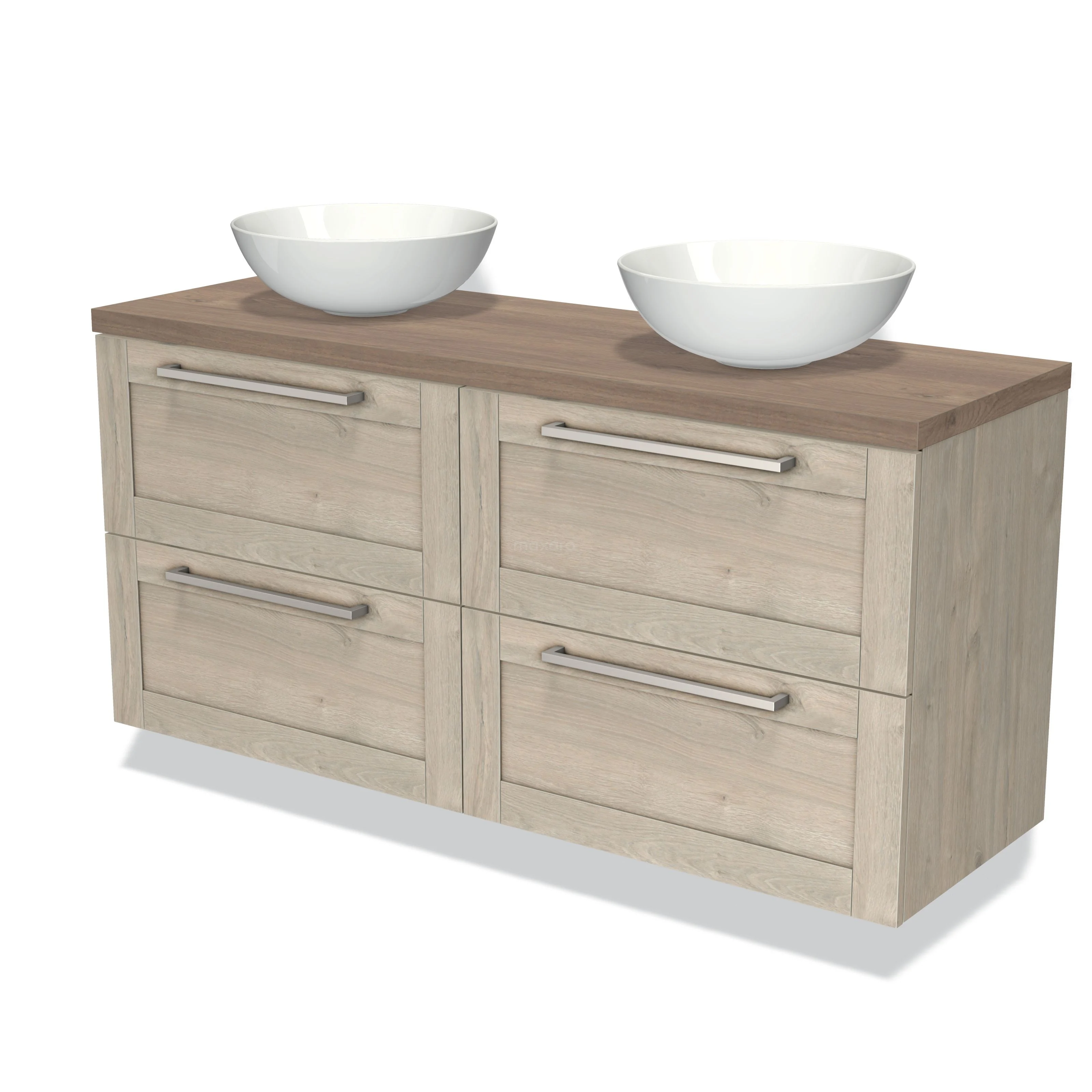 Badmöbel für Waschtischunterschrank mit Konsole 140cm Modulo Plato hellgraue Eiche 4 Schubladen Rahmen mittelbraune Eiche Platte