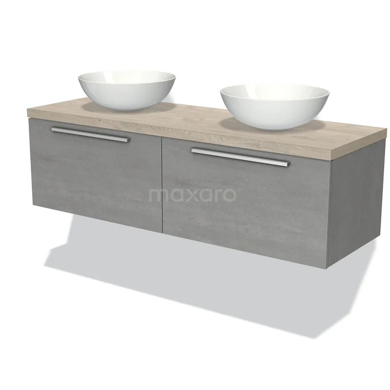 Badmöbel für Waschtischunterschrank mit Konsole 140cm Modulo Plato hellgrauer Beton 2 Schubladen Flach hellgraue Eiche Platte