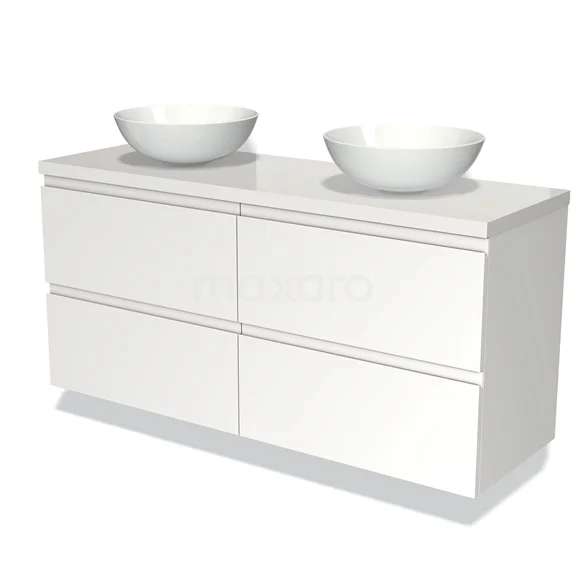 Badmöbel für Waschtischunterschrank mit Konsole 140cm Modulo Plato Matt Weiß 4 Schubladen Grifflos Hochglanz Weiß Platte