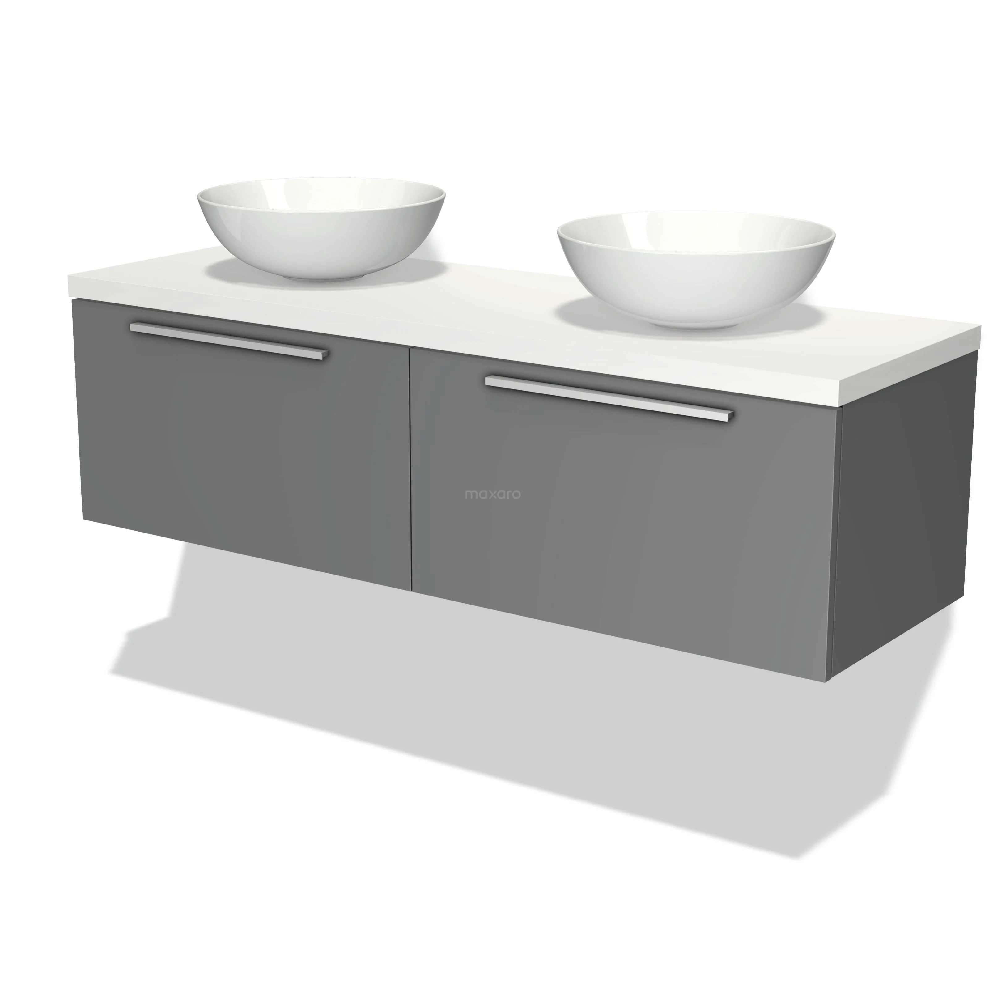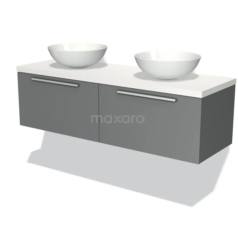 Badmöbel für Waschtischunterschrank mit Konsole 140cm Modulo Plato Mittelgrau 2 Schubladen Flach Matt Weiß Platte