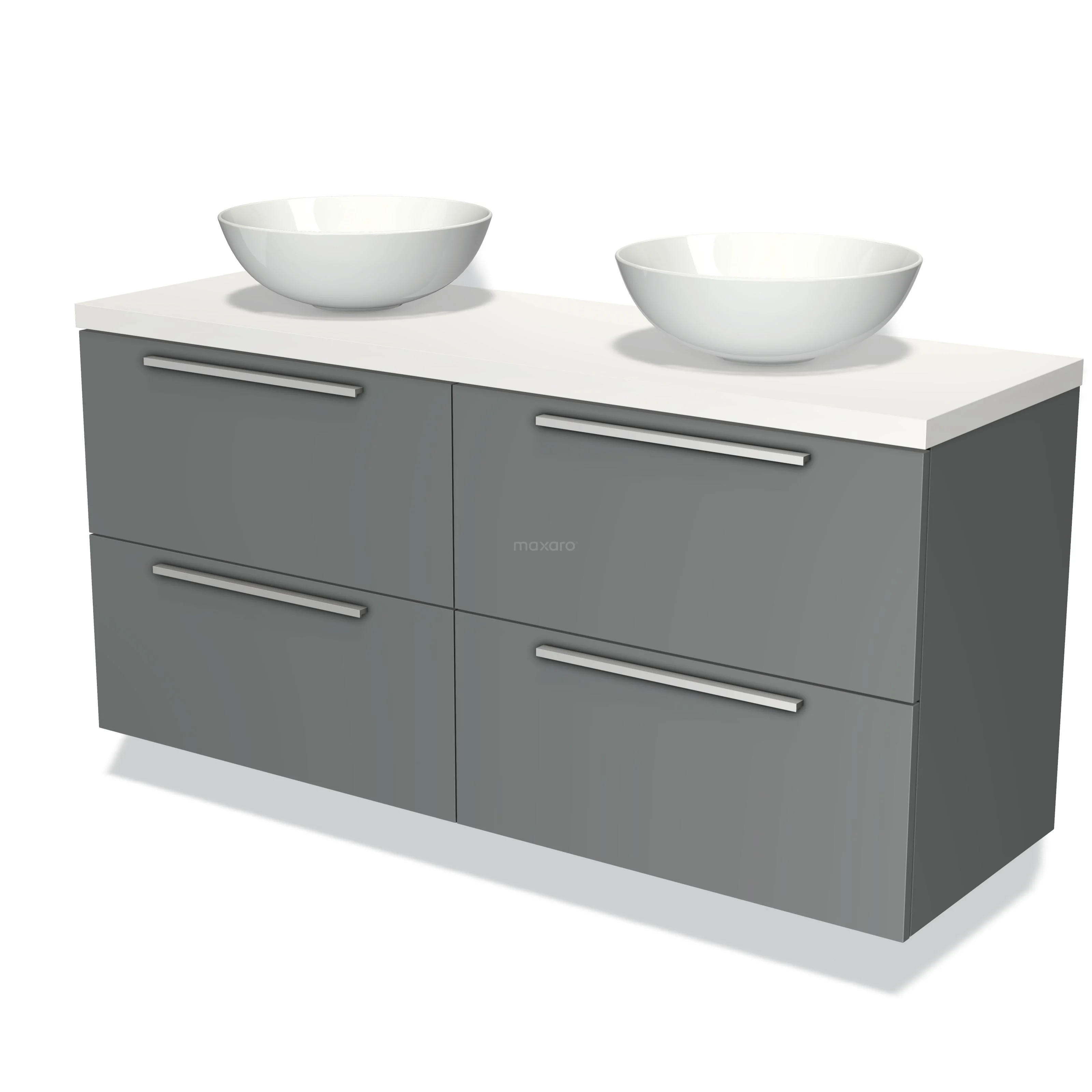 Badmöbel für Waschtischunterschrank mit Konsole 140cm Modulo Plato Mittelgrau 4 Schubladen Flach Matt Weiß Platte