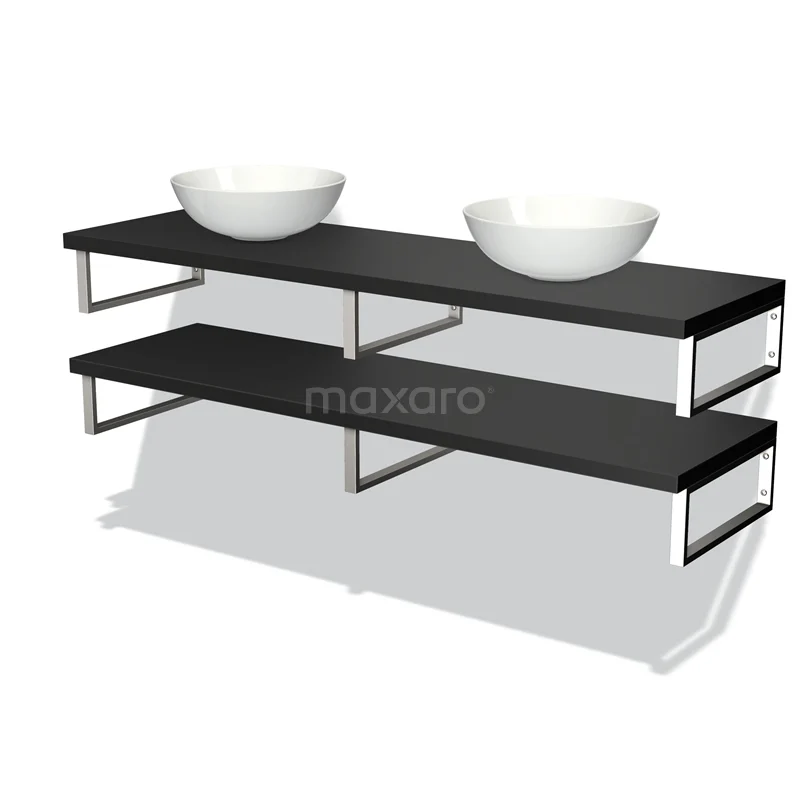 Badmöbel für Waschtischunterschrank mit Konsole 160 cm Modulo Plato Matt Schwarz 2 Waschtischplatten