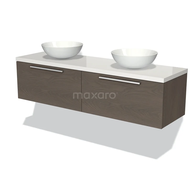 Badmöbel für Waschtischunterschrank mit Konsole 160cm Modulo Plato dunkelbraune Eiche 2 Schubladen Flach Hochglanz Weiß Platte