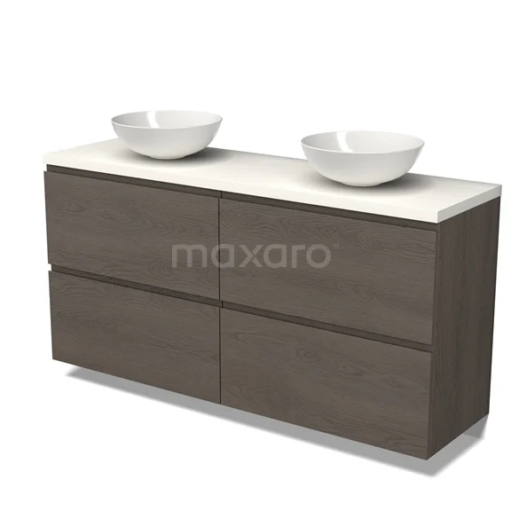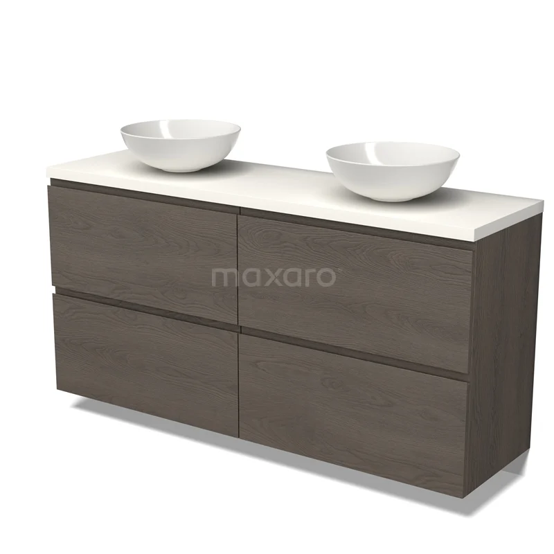 Badmöbel für Waschtischunterschrank mit Konsole 160cm Modulo Plato dunkelbraune Eiche 4 hohe Schubladen grifflos Matt Weiß Platte