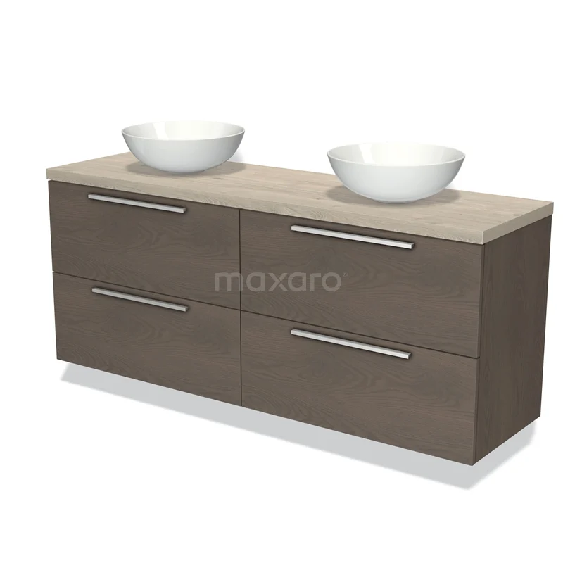 Badmöbel für Waschtischunterschrank mit Konsole 160cm Modulo Plato dunkelbraune Eiche 4 Schubladen Flach hellgraue Eiche Platte