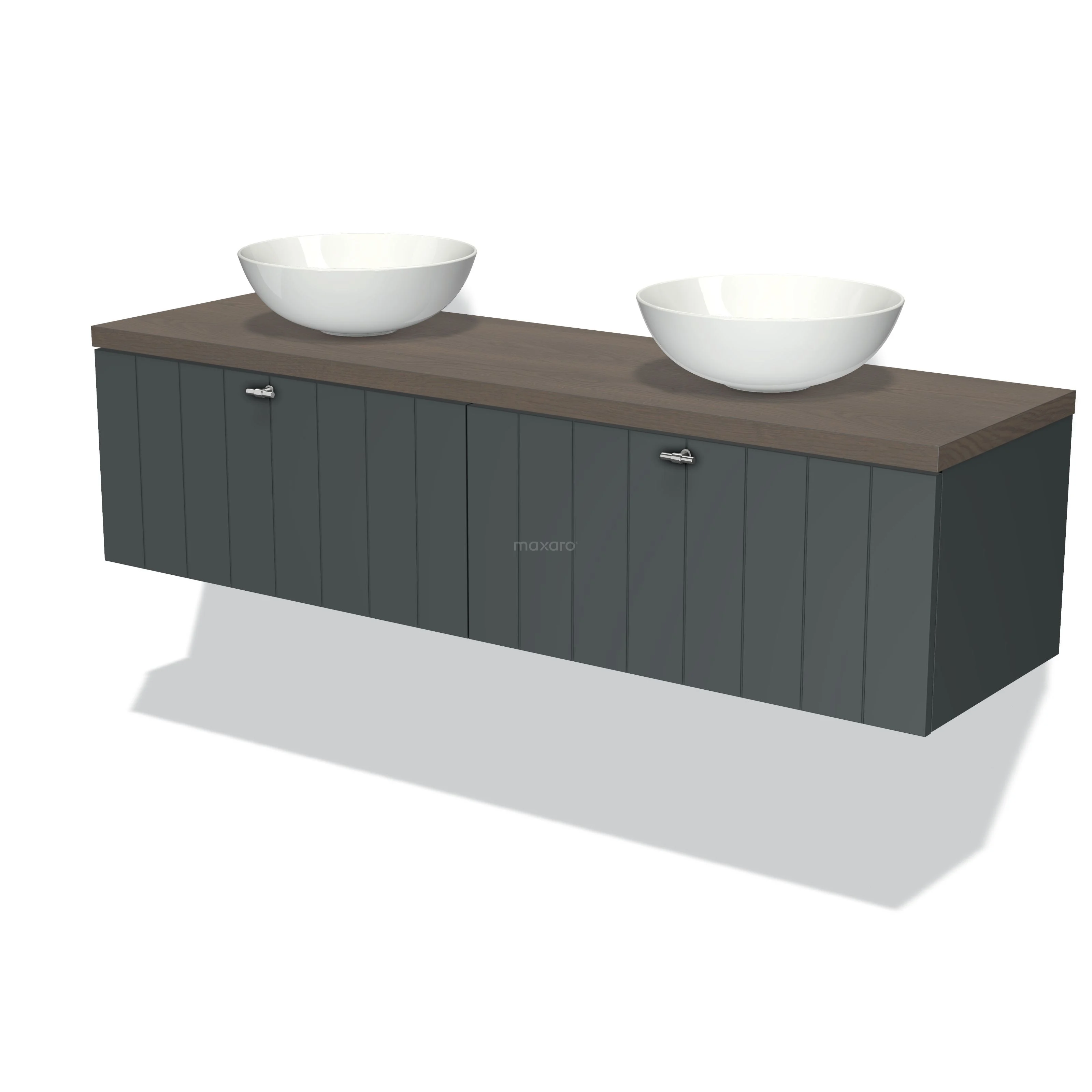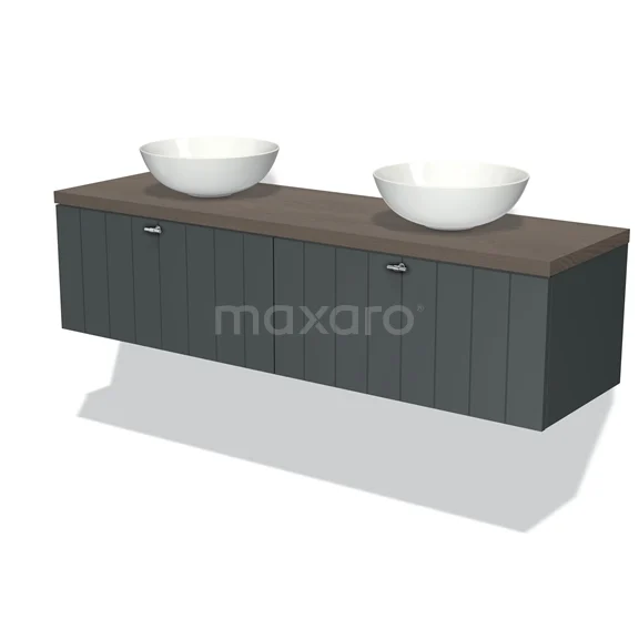 Badmöbel für Waschtischunterschrank mit Konsole 160cm Modulo Plato Dunkelgrau 2 Schubladen Lamelle Dunkelbraune Eiche Platte