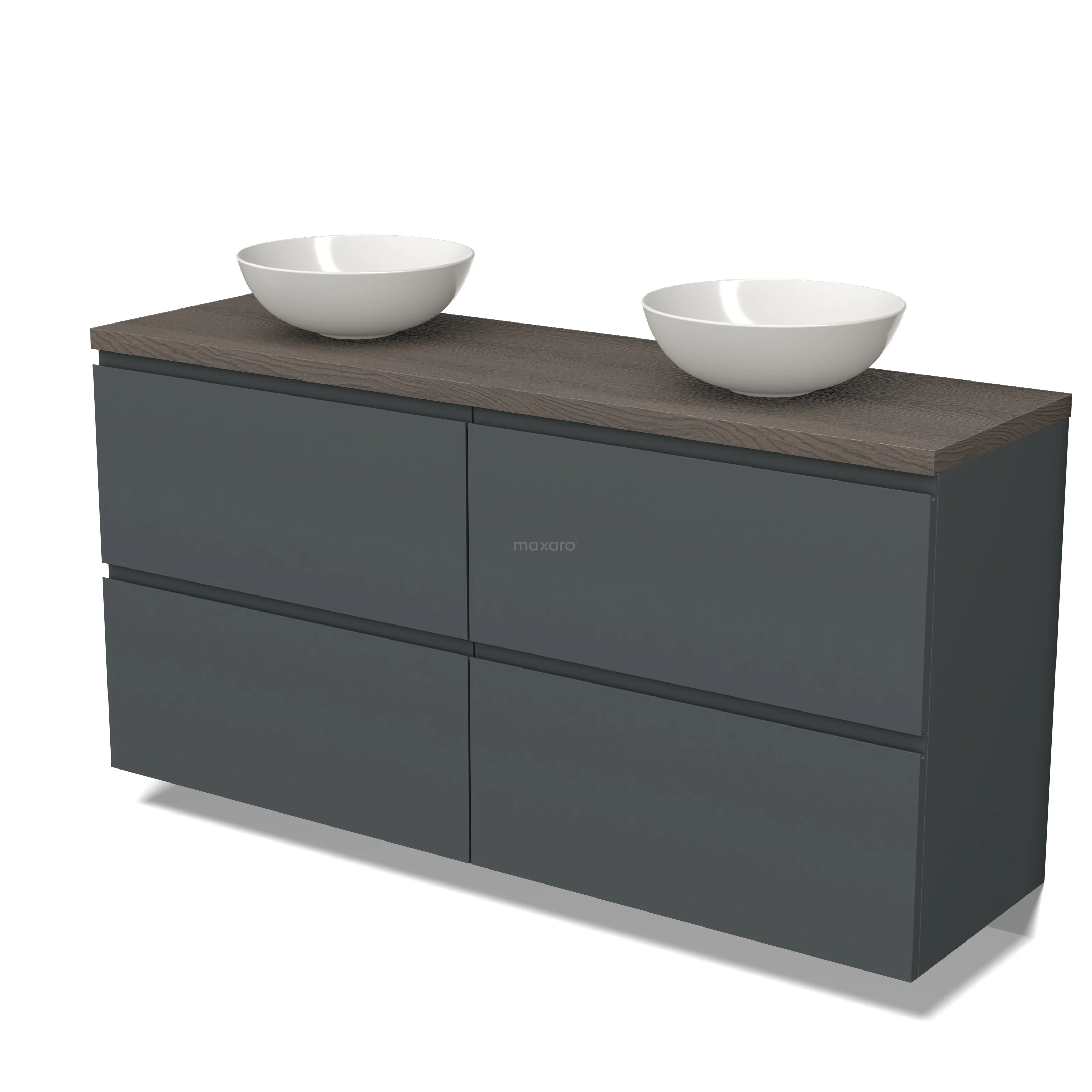 Badmöbel für Waschtischunterschrank mit Konsole 160cm Modulo Plato Dunkelgrau 4 hohe Schubladen Grifflose dunkelbraune Eiche Platte