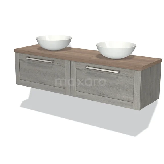Badmöbel für Waschtischunterschrank mit Konsole 160cm Modulo Plato Grau Eiche 2 Schubladen Rahmen mittelbraune Eiche Platte