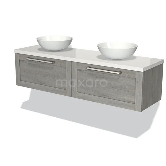 Badmöbel für Waschtischunterschrank mit Konsole 160cm Modulo Plato Graue Eiche 2 Schubladen Rahmen Hochglanz Weiß Platte