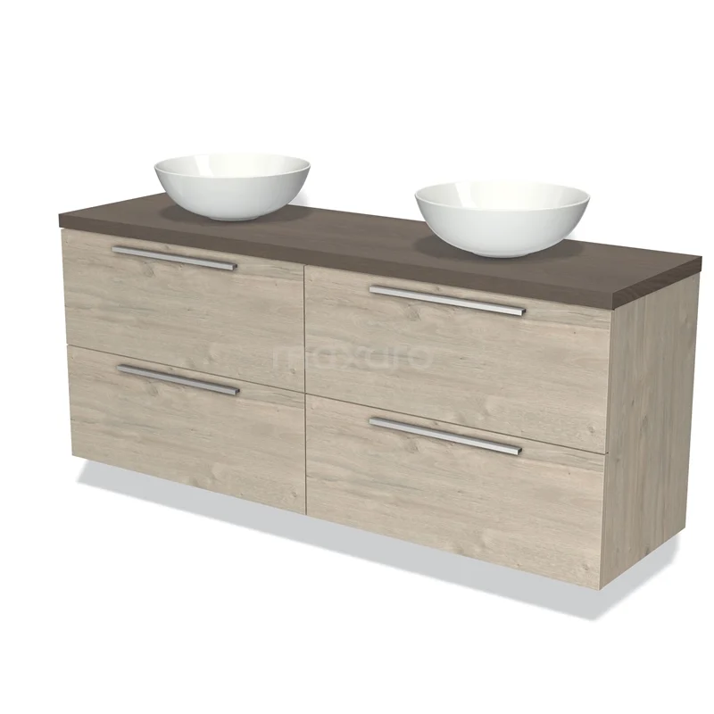 Badmöbel für Waschtischunterschrank mit Konsole 160cm Modulo Plato hellgraue Eiche 4 Schubladen Flach dunkelbraune Eiche Platte
