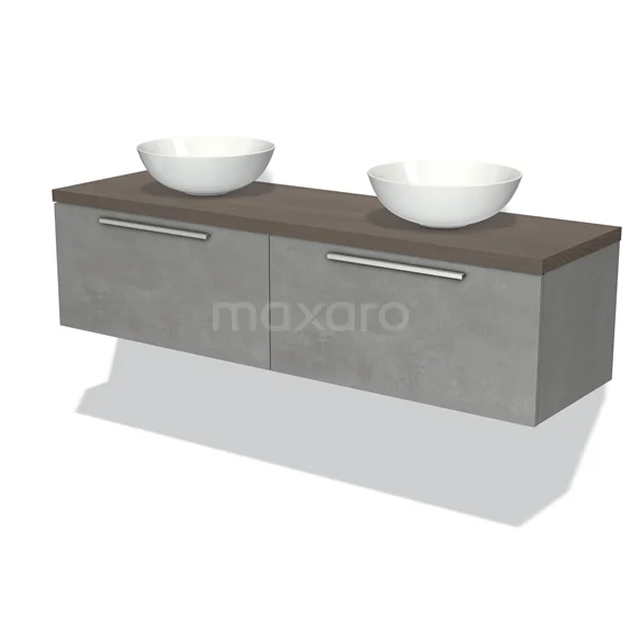 Badmöbel für Waschtischunterschrank mit Konsole 160cm Modulo Plato hellgrauer Beton 2 Schubladen Flach dunkelbraune Eiche Platte