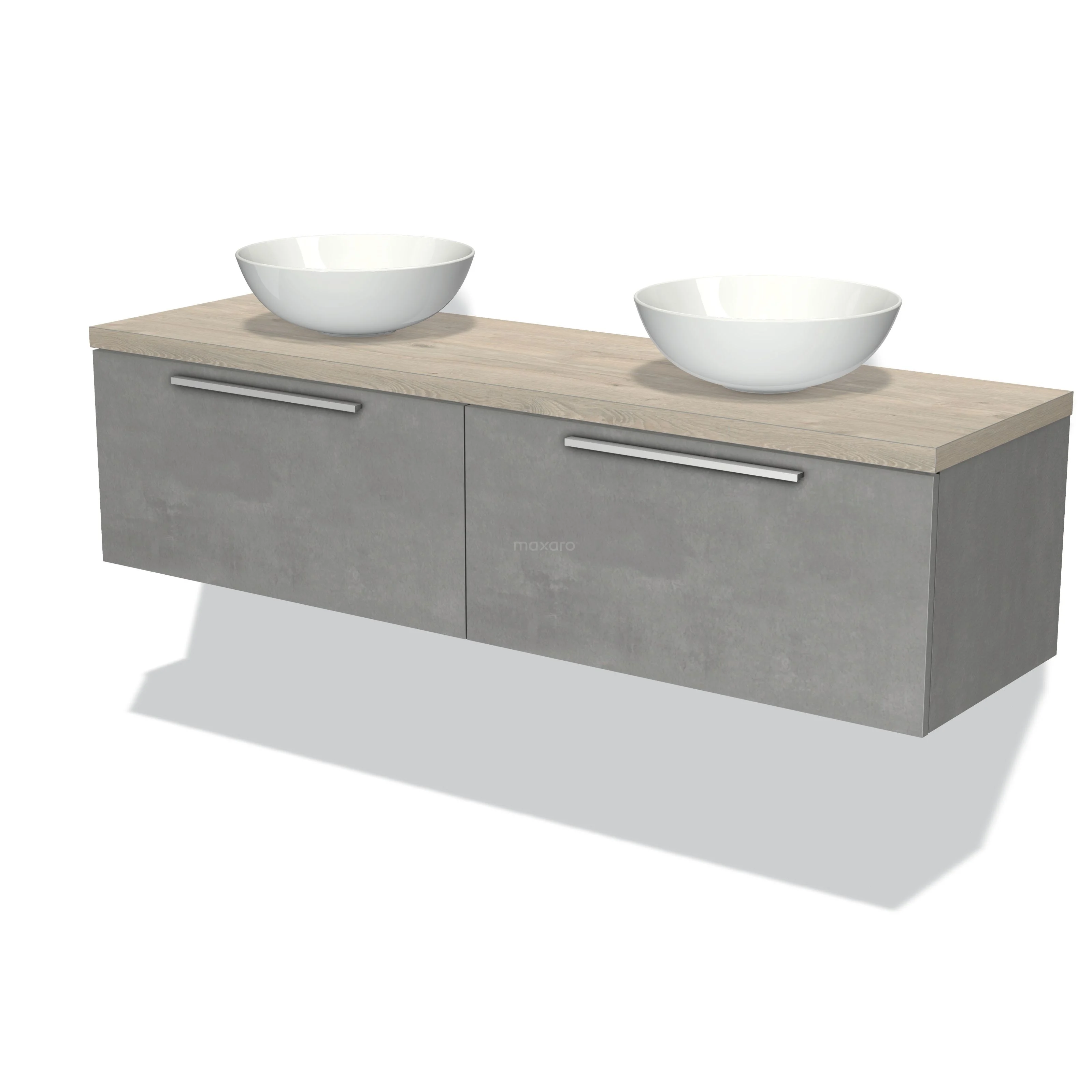 Badmöbel für Waschtischunterschrank mit Konsole 160cm Modulo Plato hellgrauer Beton 2 Schubladen Flach hellgraue Eiche Platte