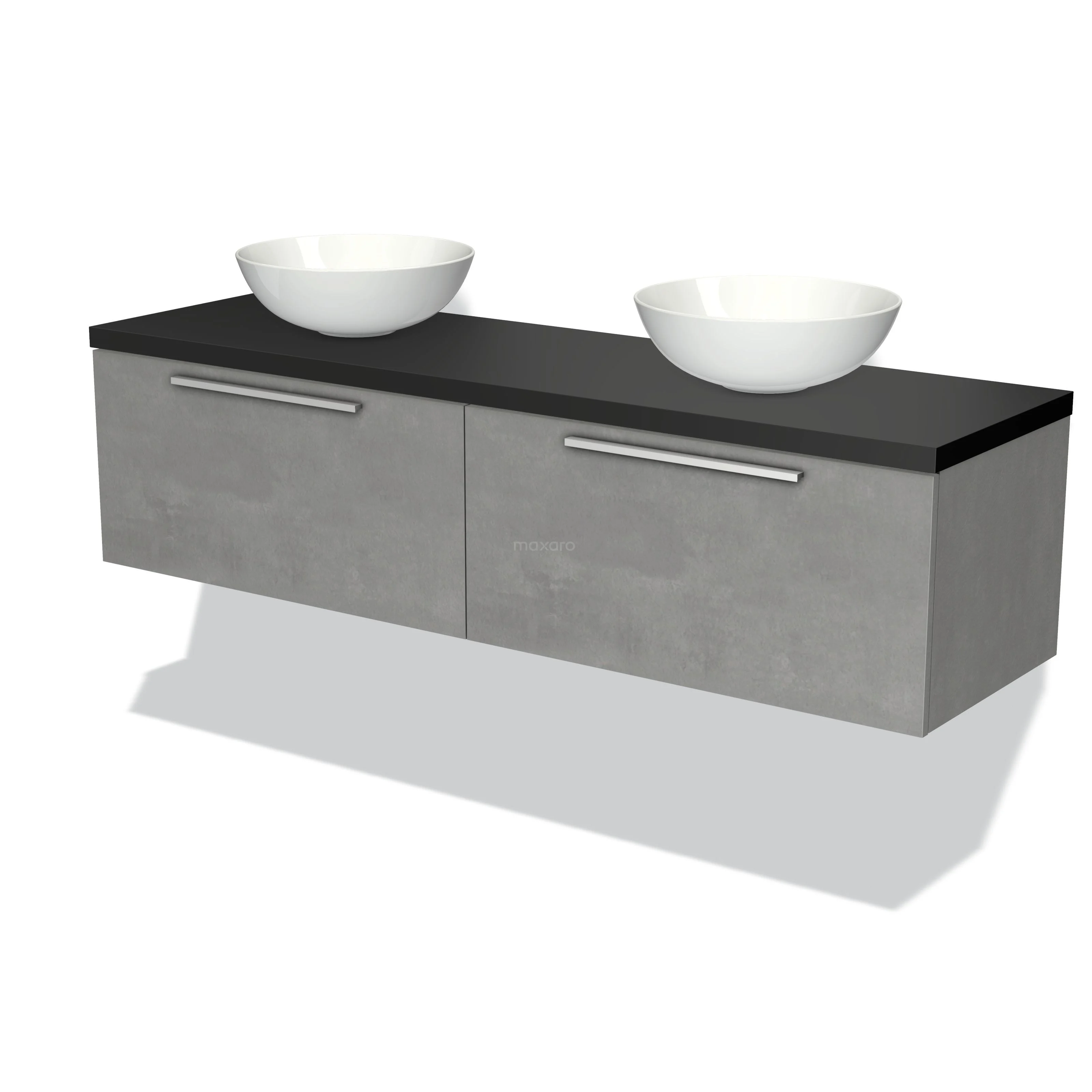 Badmöbel für Waschtischunterschrank mit Konsole 160cm Modulo Plato hellgrauer Beton 2 Schubladen Flach Matt Schwarz Platte