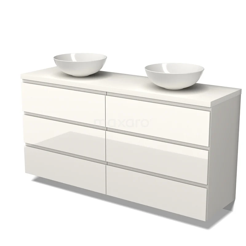 Modulo Plato Badmöbel mit Aufsatzwaschbecken | 160 cm Hochglanz Weiß Grifflos front Matt Weiß blatt 6 Schubladen