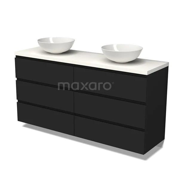 Modulo Plato Badmöbel mit Aufsatzwaschbecken | 160 cm Matt Schwarz Grifflos front Matt Weiß blatt 6 Schubladen