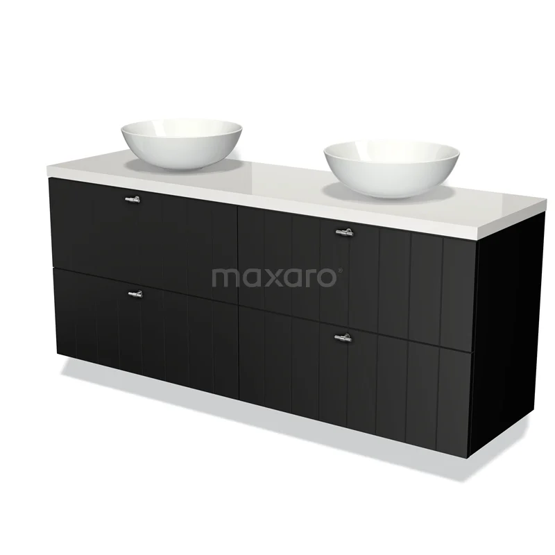 Badmöbel für Waschtischunterschrank mit Konsole 160cm Modulo Plato Matt Schwarz 4 Schubladen Lamelle Hochglanz Weiß Platte