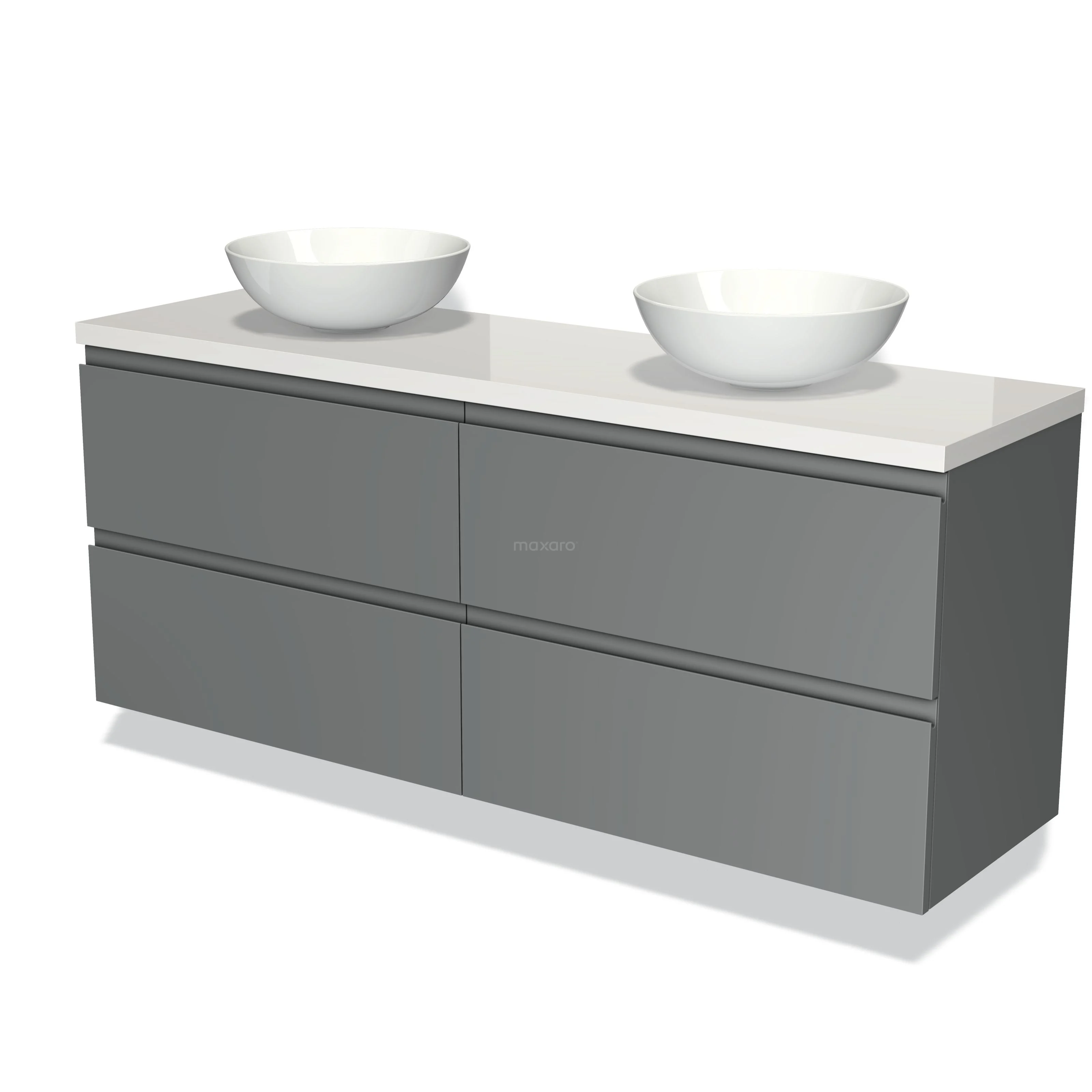 Badmöbel für Waschtischunterschrank mit Konsole 160cm Modulo Plato Mittelgrau 4 Schubladen grifflos Hochglanz Weiß Platte