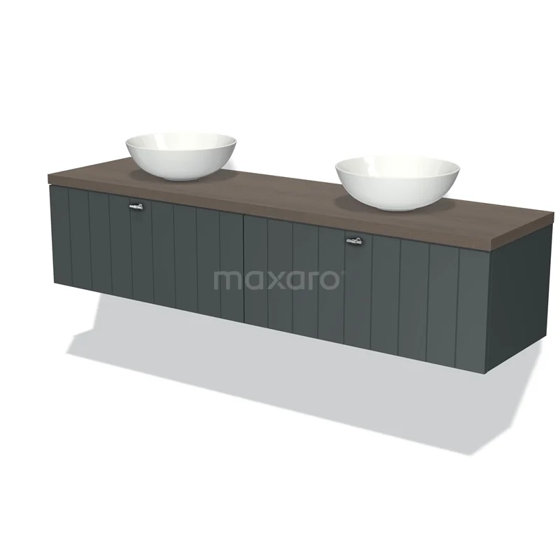 Badmöbel für Waschtischunterschrank mit Konsole 180cm Modulo Plato Dunkelgrau 2 Schubladen Lamelle Dunkelbraune Eiche Platte
