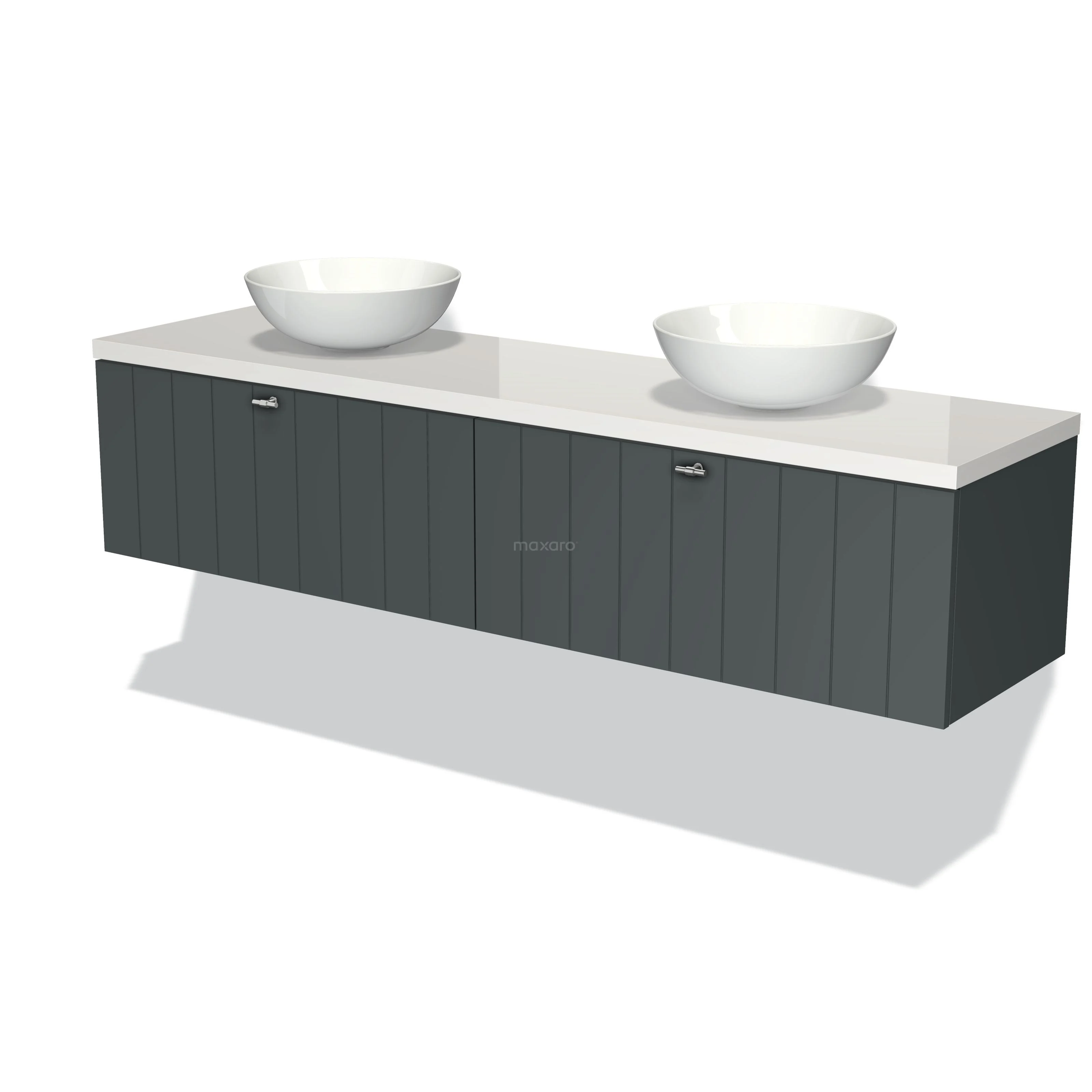 Badmöbel für Waschtischunterschrank mit Konsole 180cm Modulo Plato Dunkelgrau 2 Schubladen Lamelle Hochglanz Weiß Platte