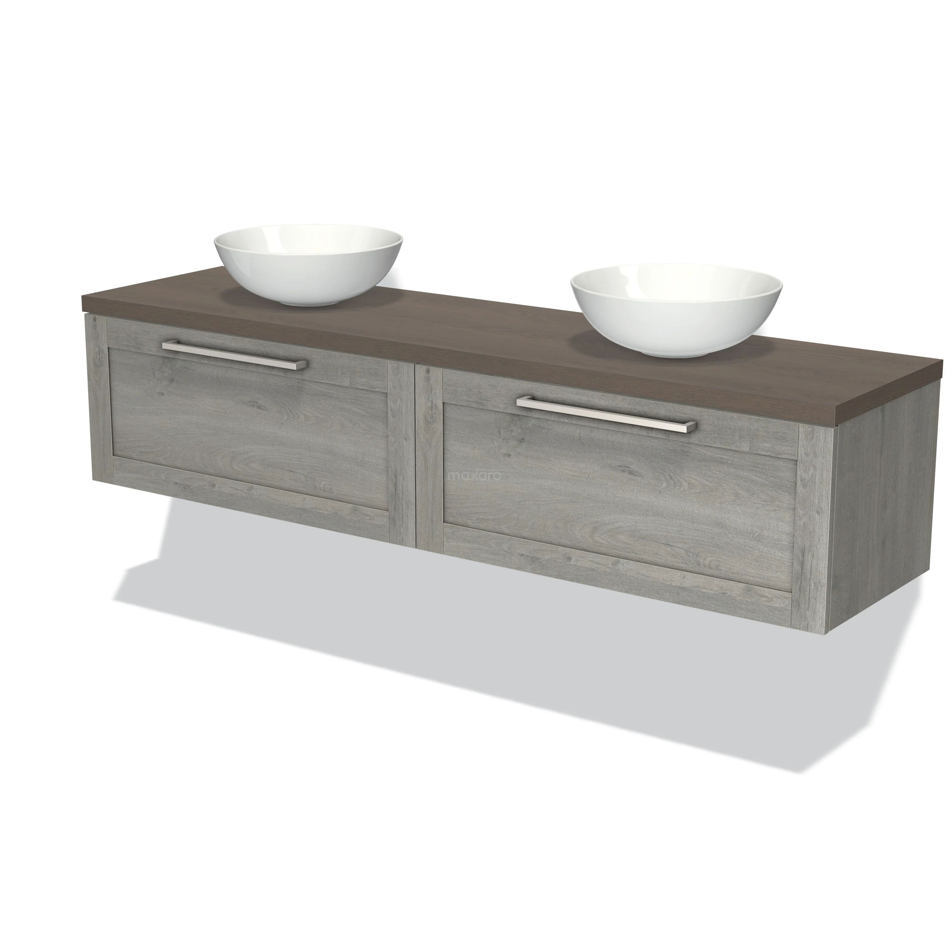 Badmöbel für Waschtischunterschrank mit Konsole 180cm Modulo Plato Graue Eiche 2 Schubladen Rahmen Dunkelbraune Eiche Platte