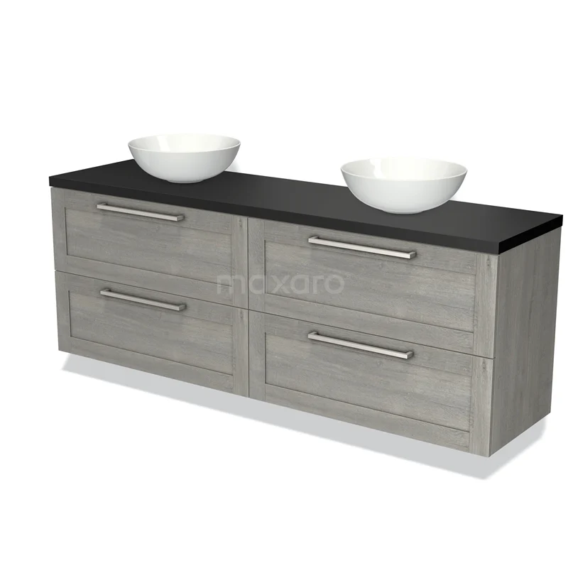 Badmöbel für Waschtischunterschrank mit Konsole 180cm Modulo Plato Graue Eiche 4 Schubladenrahmen Matt Schwarz Platte