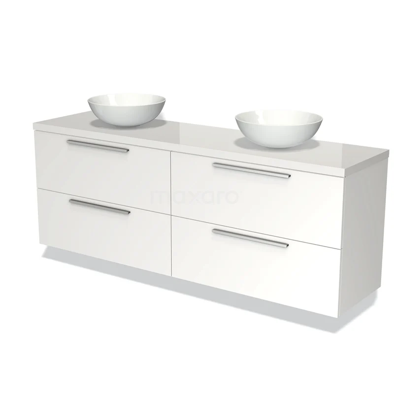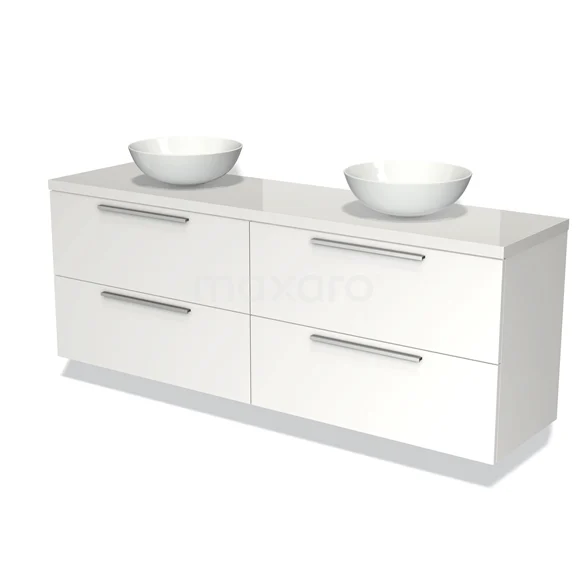 Badmöbel für Waschtischunterschrank mit Konsole 180cm Modulo Plato Matt Weiß 4 Schubladen Flach Hochglanz Weiß Platte