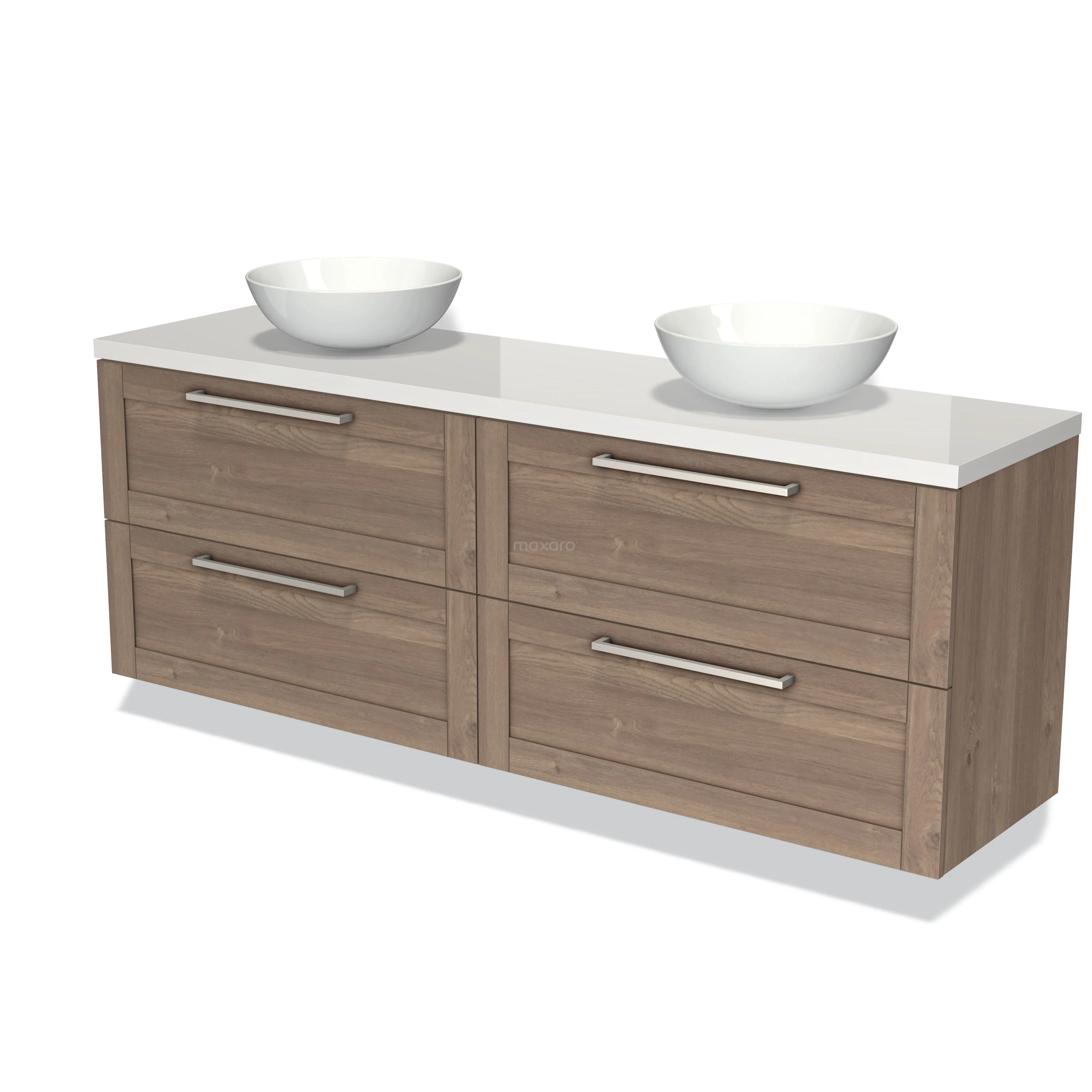Badmöbel für Waschtischunterschrank mit Konsole 180cm Modulo Plato mittelbraune Eiche 4 Schubladen Rahmen Hochglanz Weiß Platte