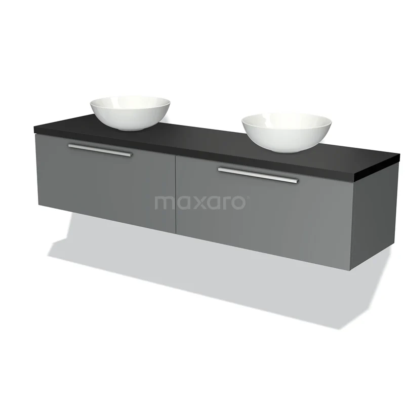 Badmöbel für Waschtischunterschrank mit Konsole 180cm Modulo Plato Mittelgrau 2 Schubladen Flach Matt Schwarz Platte