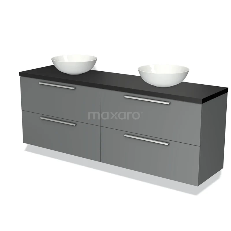 Badmöbel für Waschtischunterschrank mit Konsole 180cm Modulo Plato Mittelgrau 4 Schubladen Flach Matt Schwarz Platte