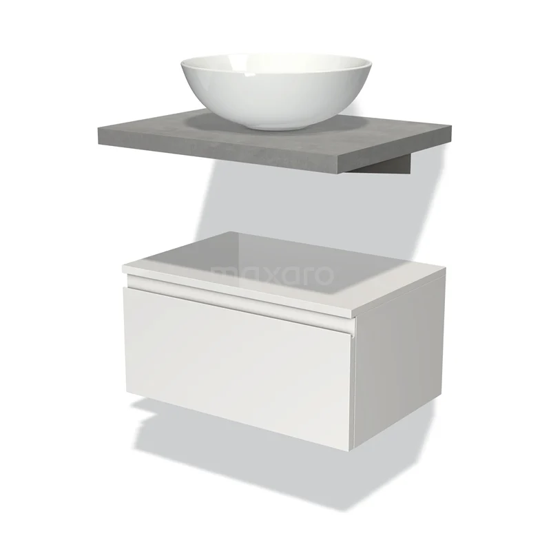 Badmöbel für Waschtischunterschrank mit Konsole 60 cm Modulo Plato Hochglanz Weiß 1 Schublade grifflos hellgrauer Beton Platte