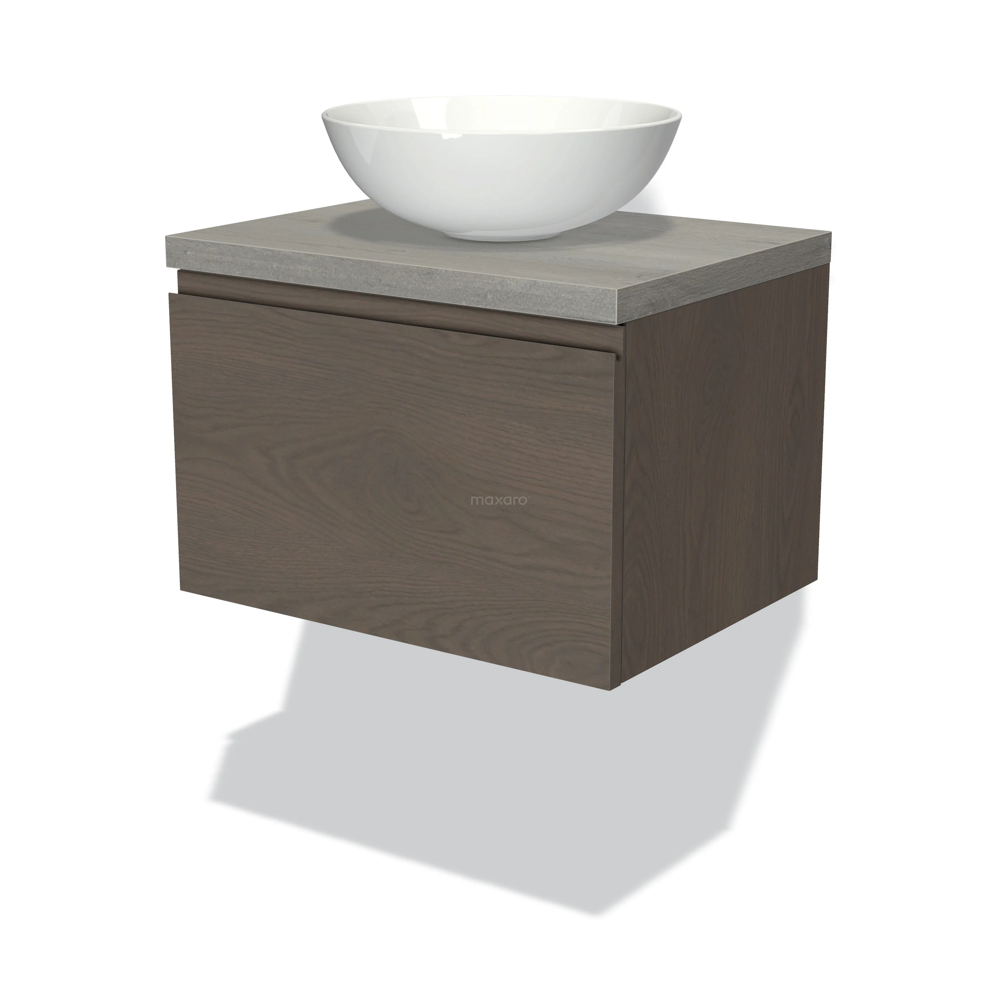Badmöbel für Waschtischunterschrank mit Konsole 60cm Modulo Plato dunkelbraune Eiche 1 Schublade grifflos graue Eiche Platte