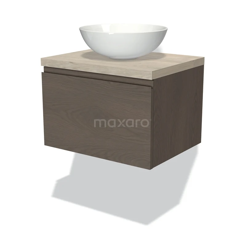 Badmöbel für Waschtischunterschrank mit Konsole 60cm Modulo Plato dunkelbraune Eiche 1 Schublade grifflos hellgraue Eiche Platte