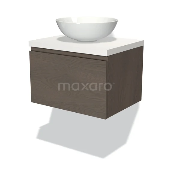 Badmöbel für Waschtischunterschrank mit Konsole 60cm Modulo Plato dunkelbraune Eiche 1 Schublade grifflos Matt Weiß Platte