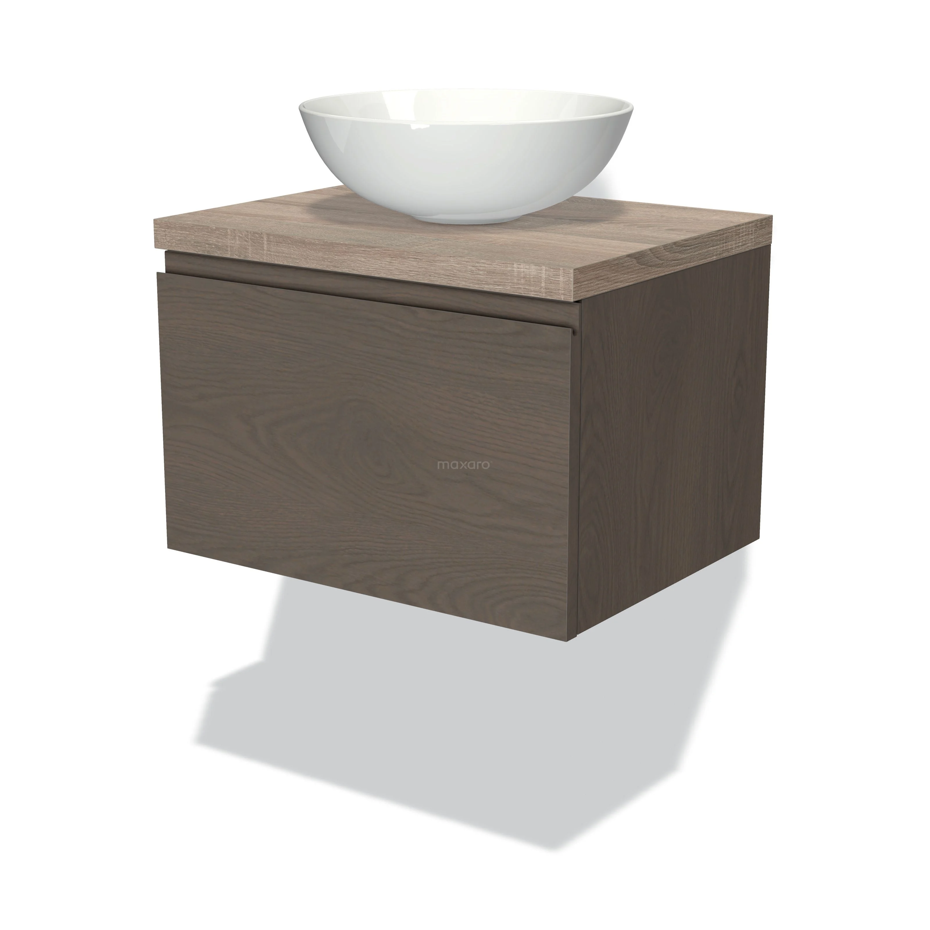 Badmöbel für Waschtischunterschrank mit Konsole 60cm Modulo Plato dunkelbraune Eiche 1 Schublade grifflose Platte aus Eiche