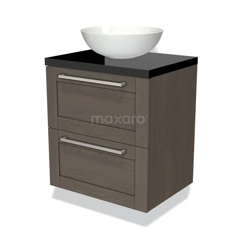Badmöbel für Waschtischunterschrank mit Konsole 60cm Modulo Plato dunkelbraune Eiche 2 Schubladen Rahmen Hochglanz Schwarz Platte