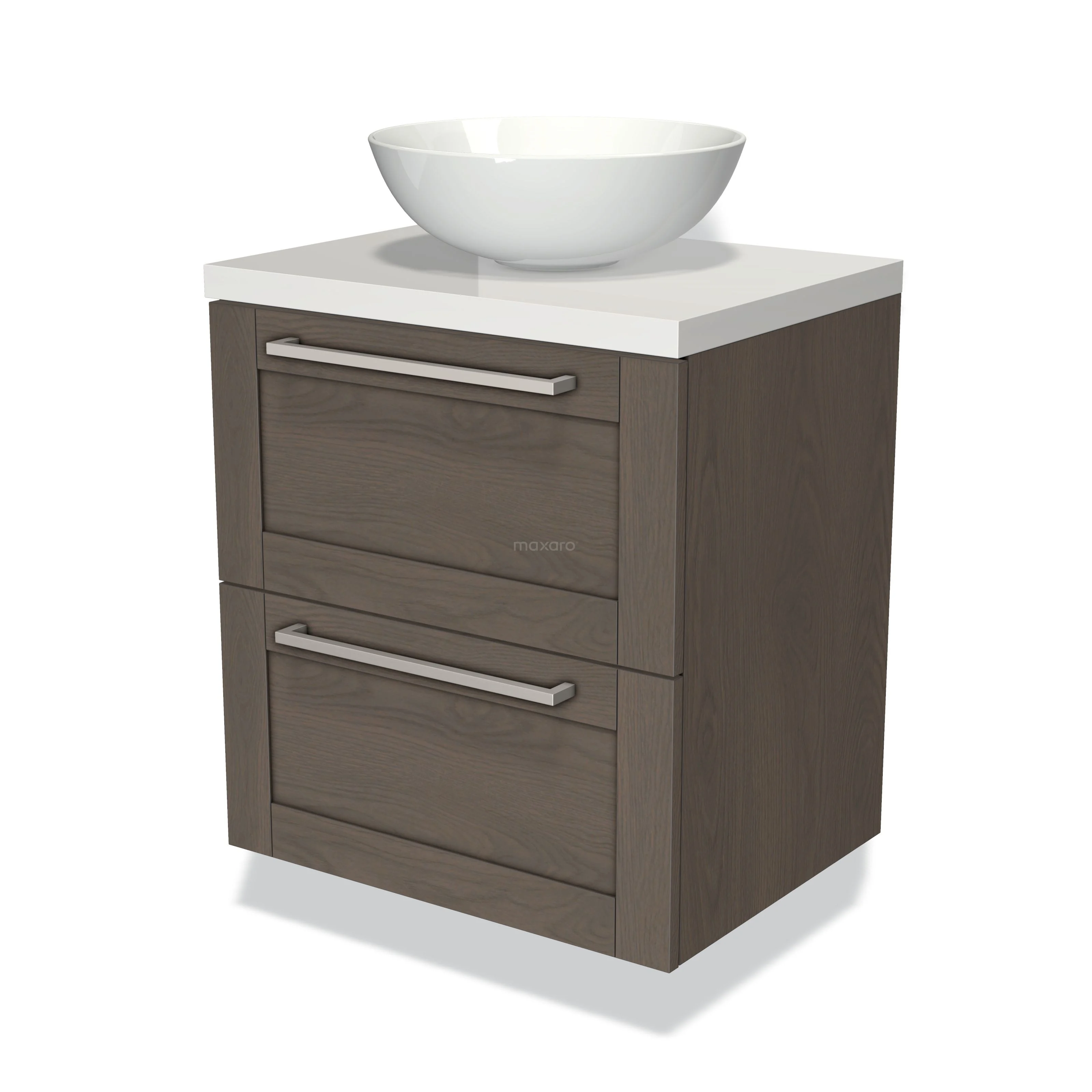 Badmöbel für Waschtischunterschrank mit Konsole 60cm Modulo Plato dunkelbraune Eiche 2 Schubladen Rahmen Hochglanz Weiß Platte