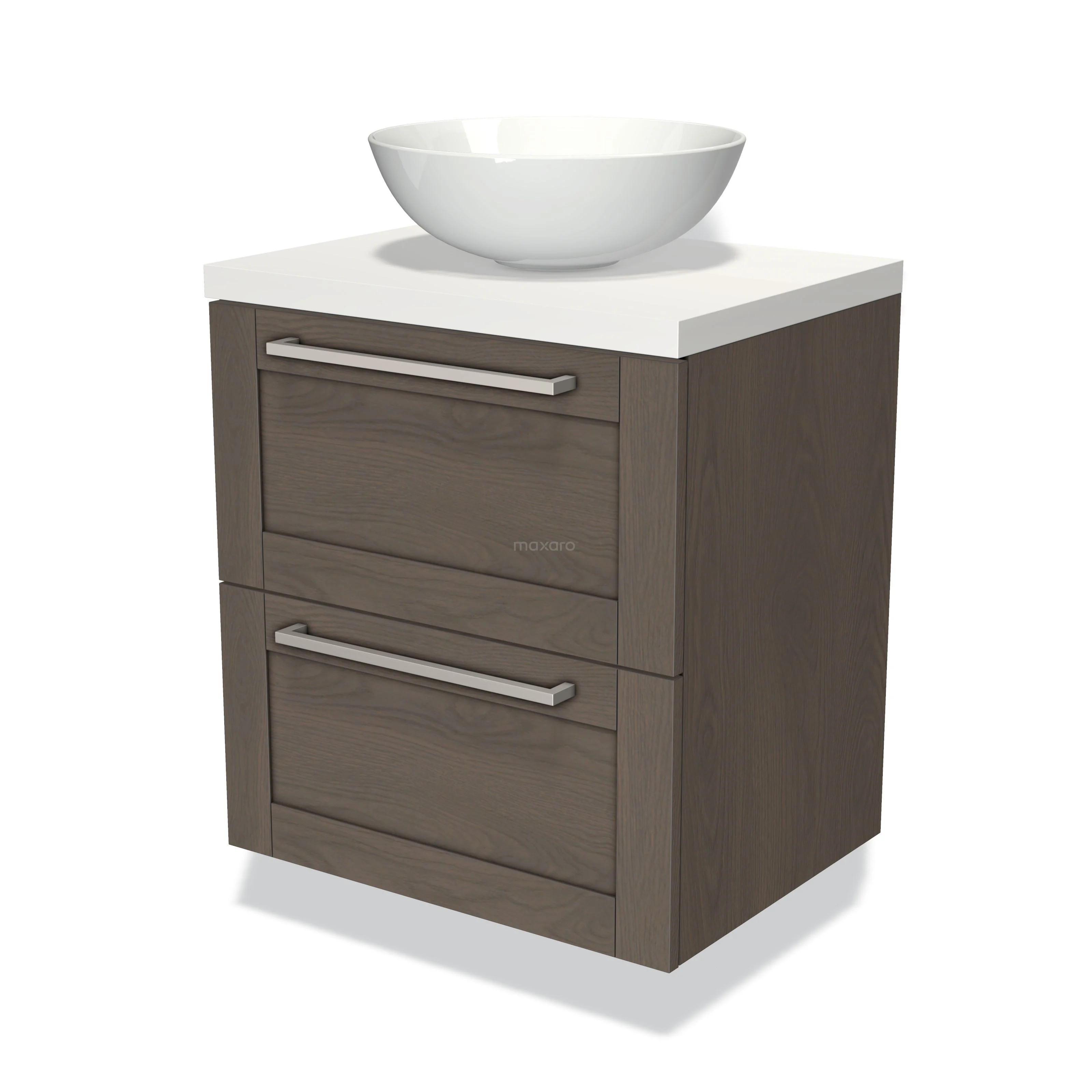 Badmöbel für Waschtischunterschrank mit Konsole 60cm Modulo Plato dunkelbraune Eiche 2 Schubladen Rahmen Matt Weiß Platte