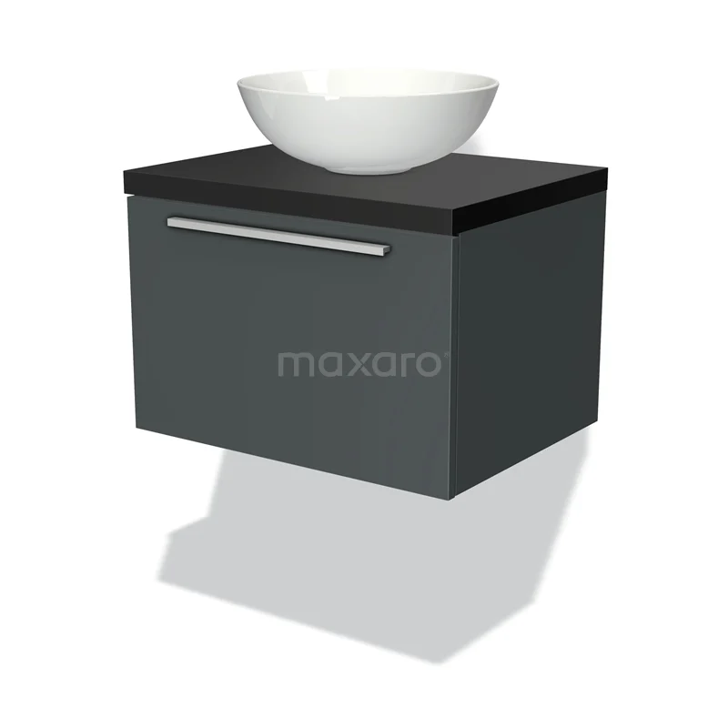 Badmöbel für Waschtischunterschrank mit Konsole 60cm Modulo Plato Dunkelgrau 1 Schublade Flach Matt Schwarz Platte