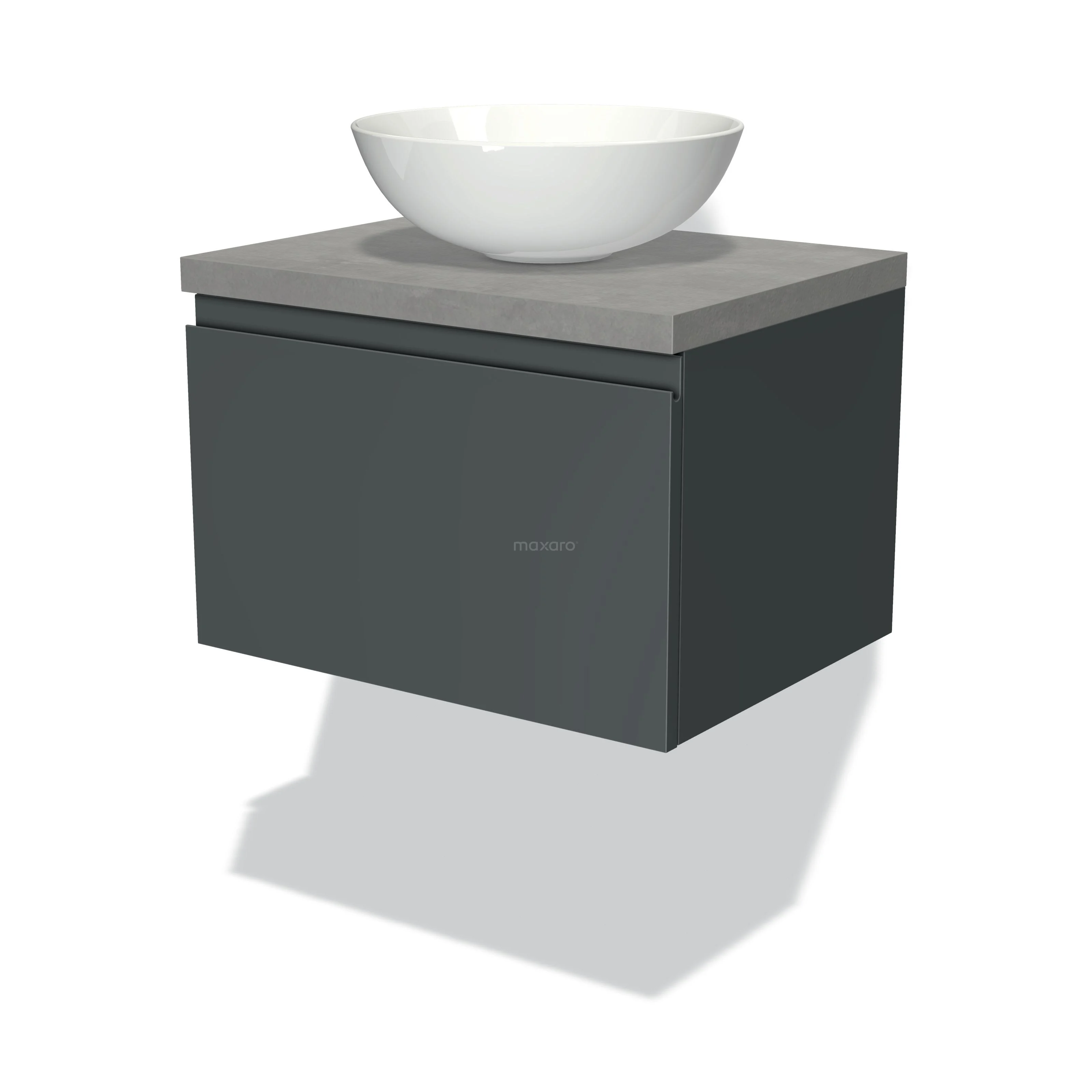 Badmöbel für Waschtischunterschrank mit Konsole 60cm Modulo Plato Dunkelgrau 1 Schublade Grifflos Hellgrauer Beton Platte