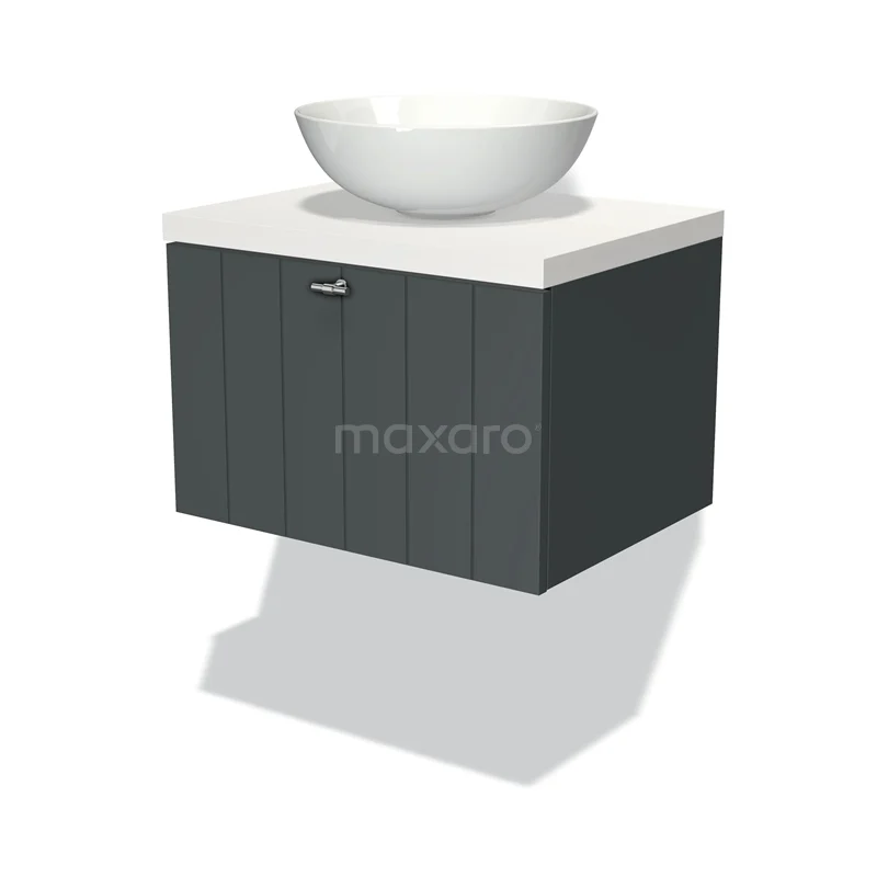Badmöbel für Waschtischunterschrank mit Konsole 60cm Modulo Plato Dunkelgrau 1 Schublade Lamelle Matt Weiß Platte